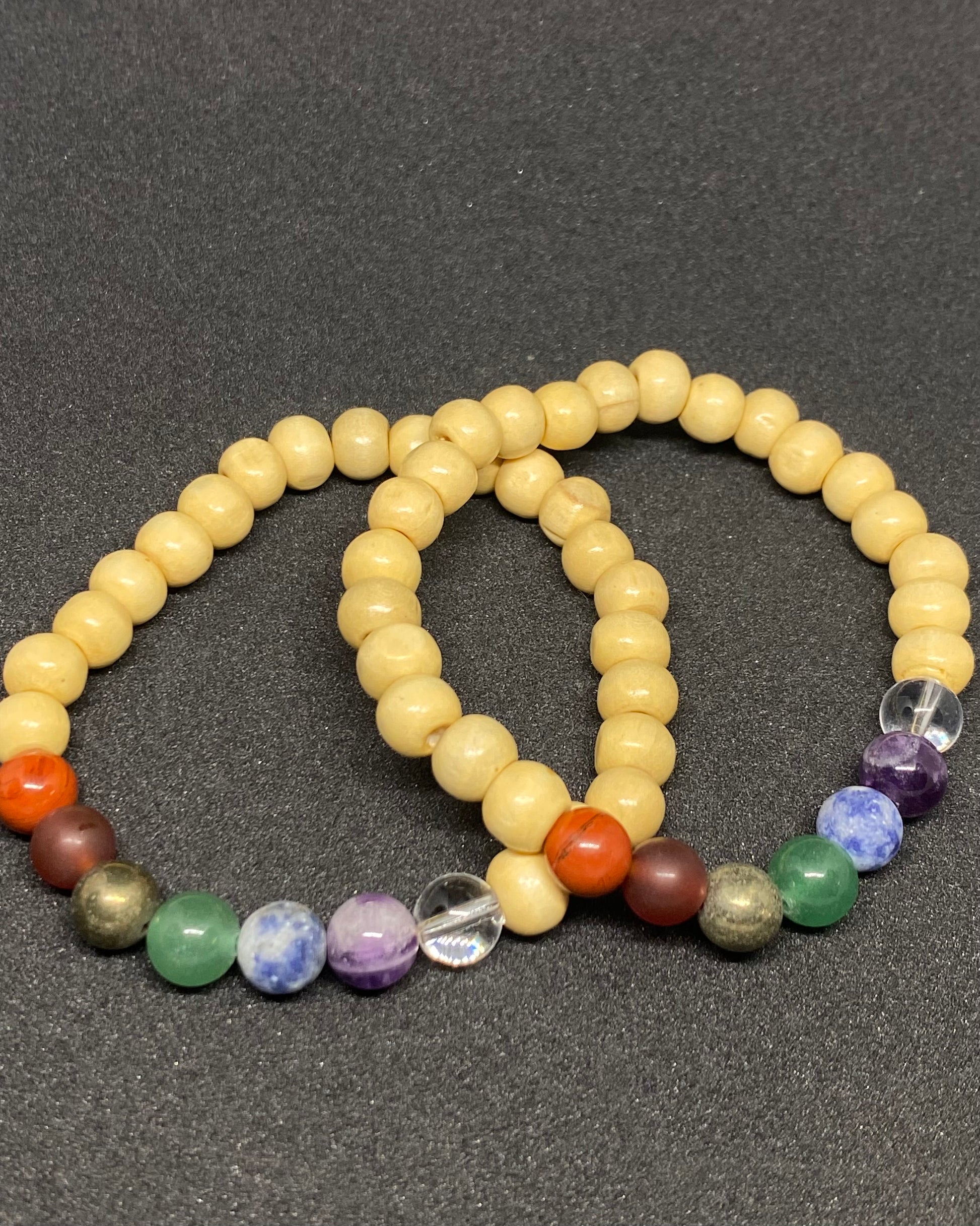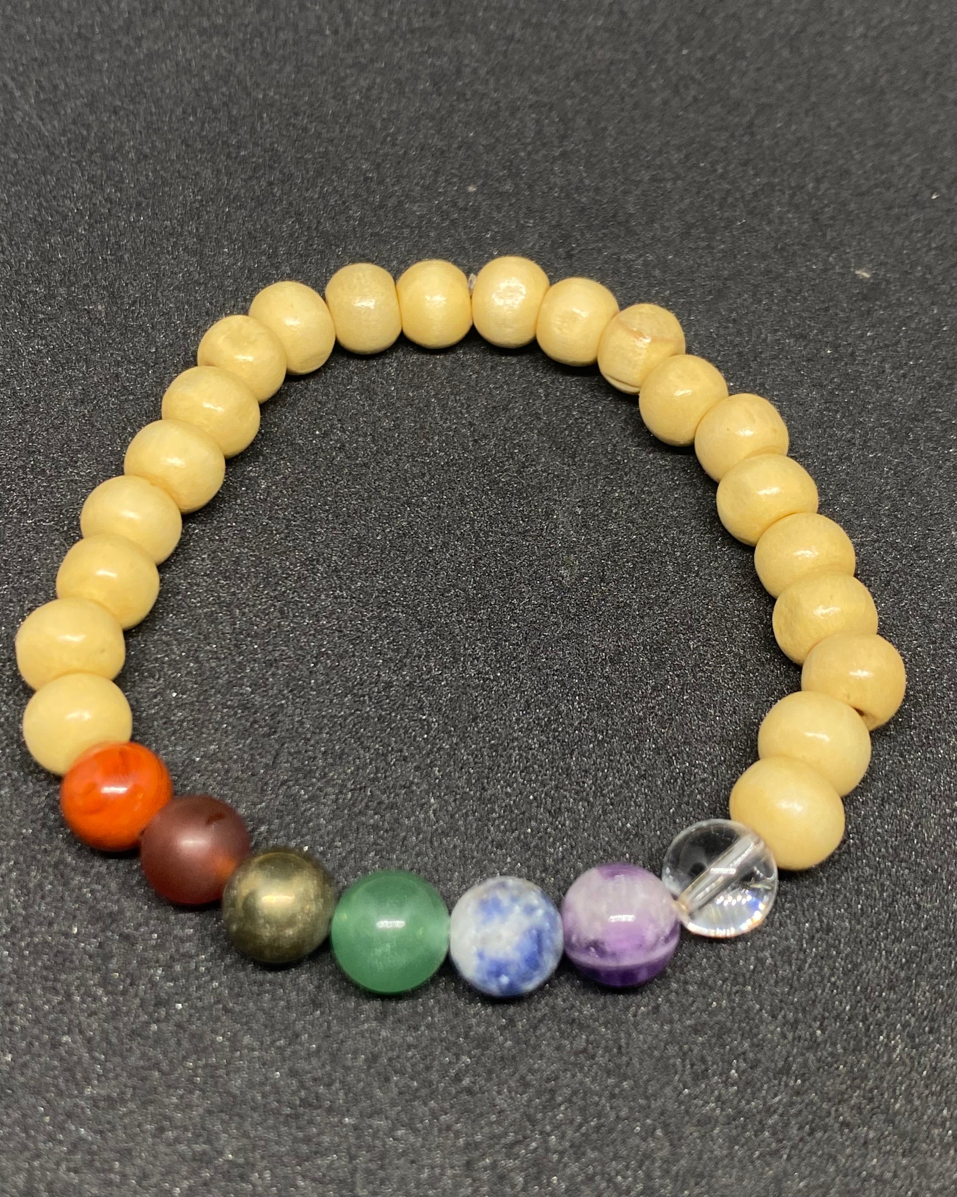 8mm natural pine woods beads, 8mm Red Jasper, Carnelian, Pyrite, Green Aventurine, Sodalite, Amethyst & Clear Quartz 17cm wrist size