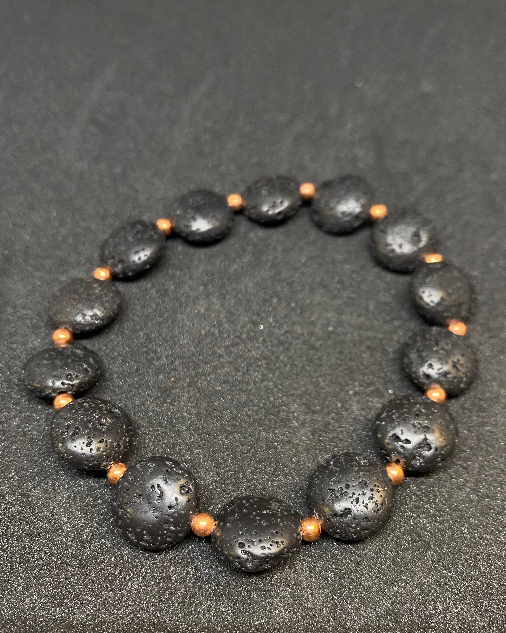 Featuring natural lava rock & pure copper beads; this bracelet was strung together with the intention of focusing on amplifying our connection to Earth, helping to ground your energy to the natural world around us.