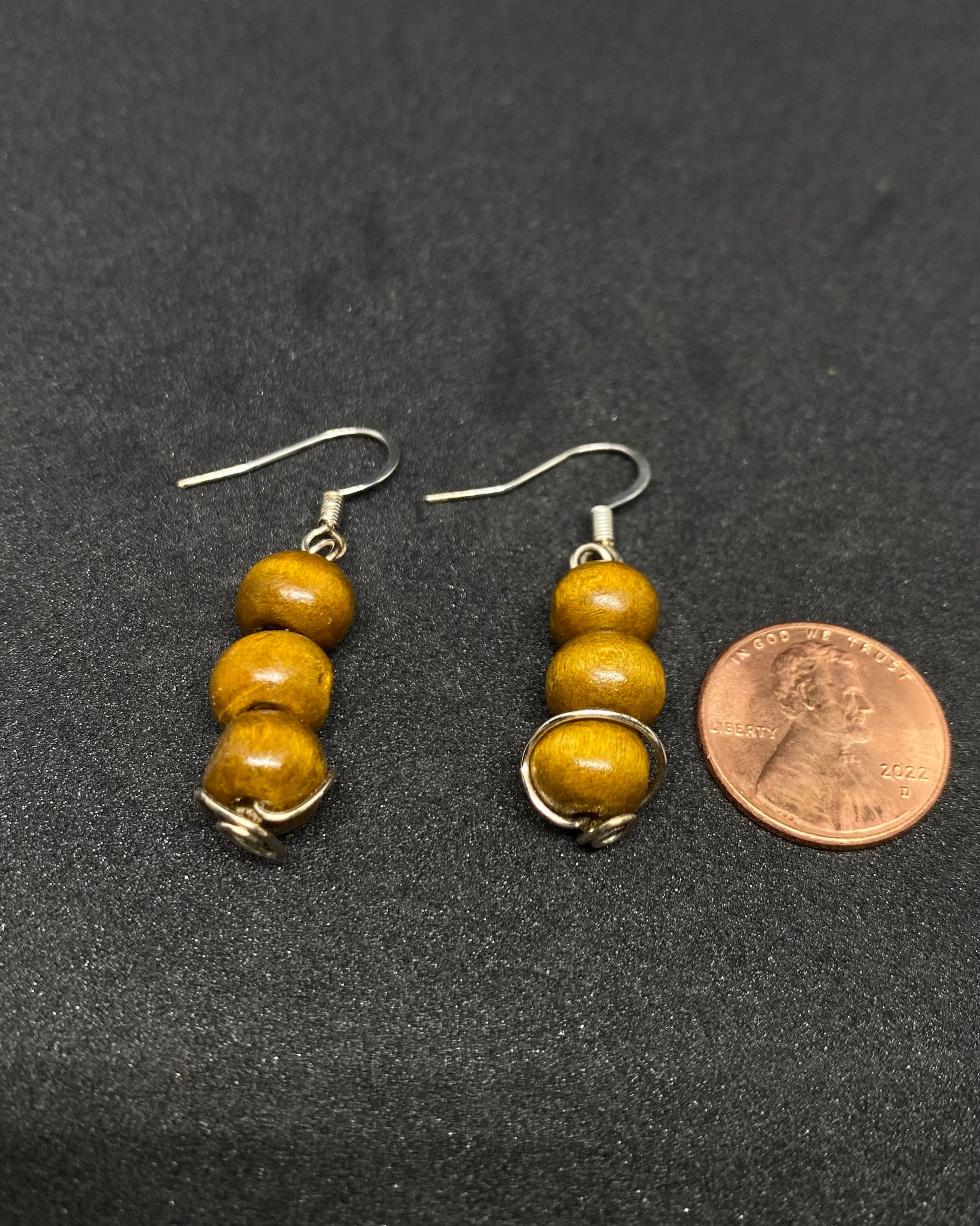 8mm stained pine beads, silver jewelers wire & sterling silver hooks