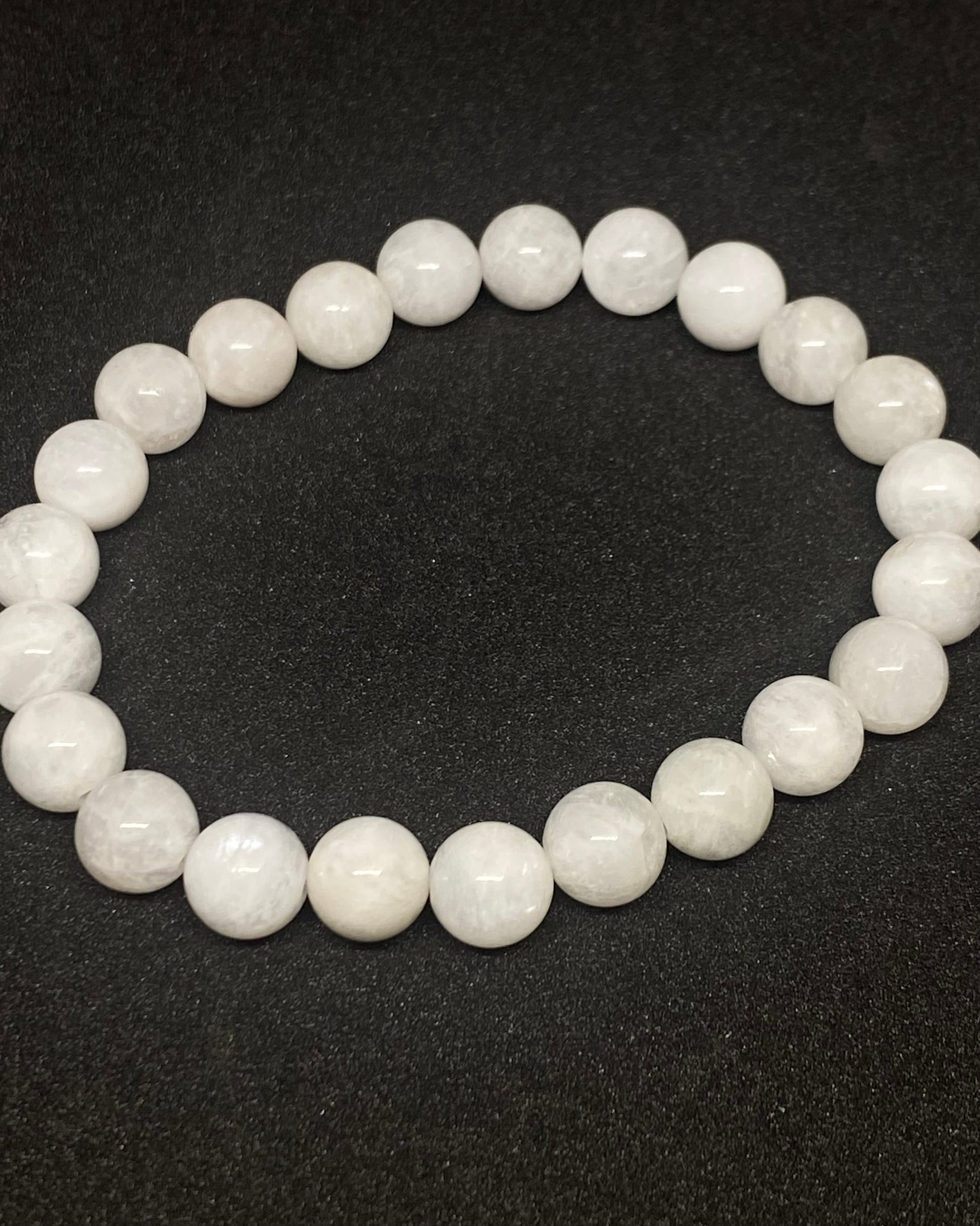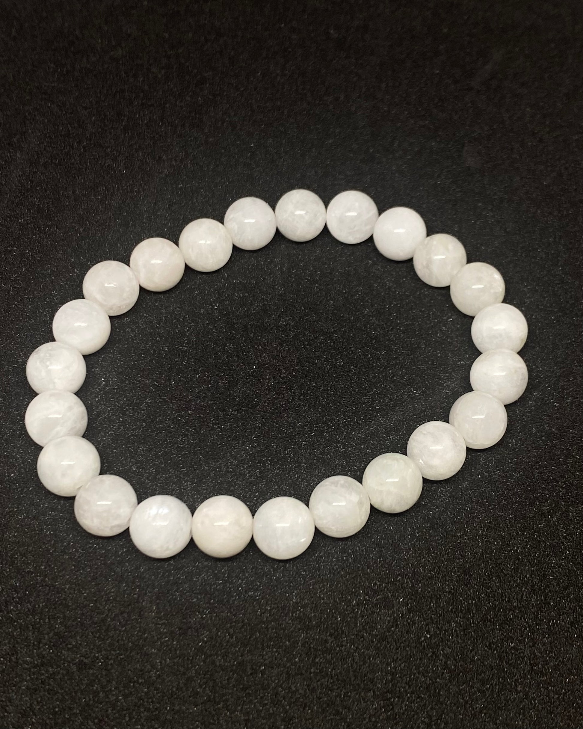 Hand strung bracelet featuring moonstone gemstones. Moonstone can be used to strengthen your intuition & harness your connection to the moon & its cycles.
