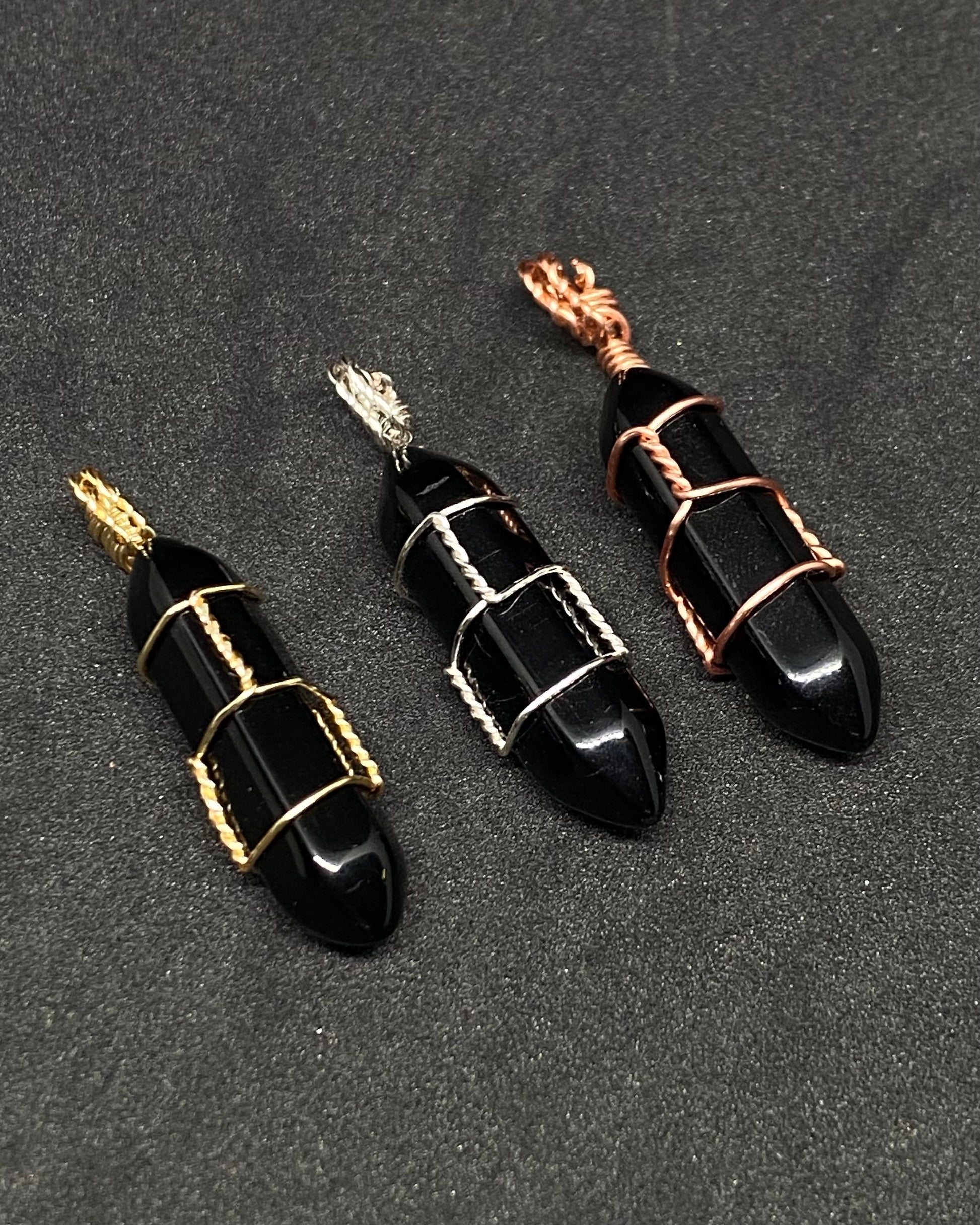 Small wire wrapped pencil point necklaces. Wrapped in your choice of jewelers silver, jewelers gold or pure copper wire.