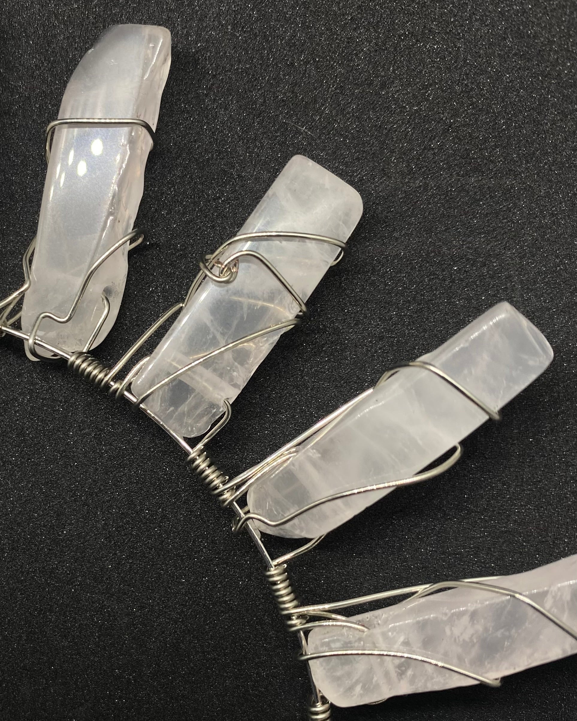 A style fit for any Goddess or Queen, durable & hand made crystal crowns. This piece features a sleek headband with slight bend & is adorned with Rose Quartz crystals.